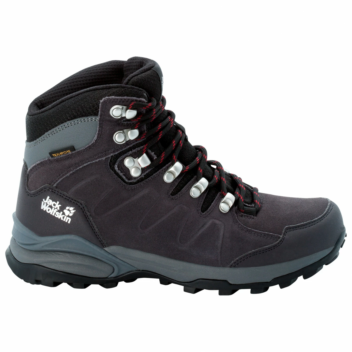 Enjoy hillwalking to summits and through valleys in comfort with the Women’s Refugio Texapore Mid walking boots by Jack Wolfskin! The waterproof Texapore membrane provides the necessary weather protection and dependable moisture management. Leather inserts make the shoes abrasion-resistant and durable. The higher collar gives you dependable stability on rough terrain. Reinforcements on the heels and toes enhance protection on rugged terrain and optimise stability. The durable rubber outsole always gives a secure grip. The cushioning midsoles guarantee long-lasting comfort and dependable stability whilst walking. Metal eyelets on the lacing score points for their durability. A very well-designed walking boot!