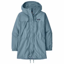The Women’s Skyforest Parka from Patagonia features a classic long cut and a wide storm flap over the front zip. Other great features are the protective hood with its adjustable drawstring and the large front pockets and chest pockets.