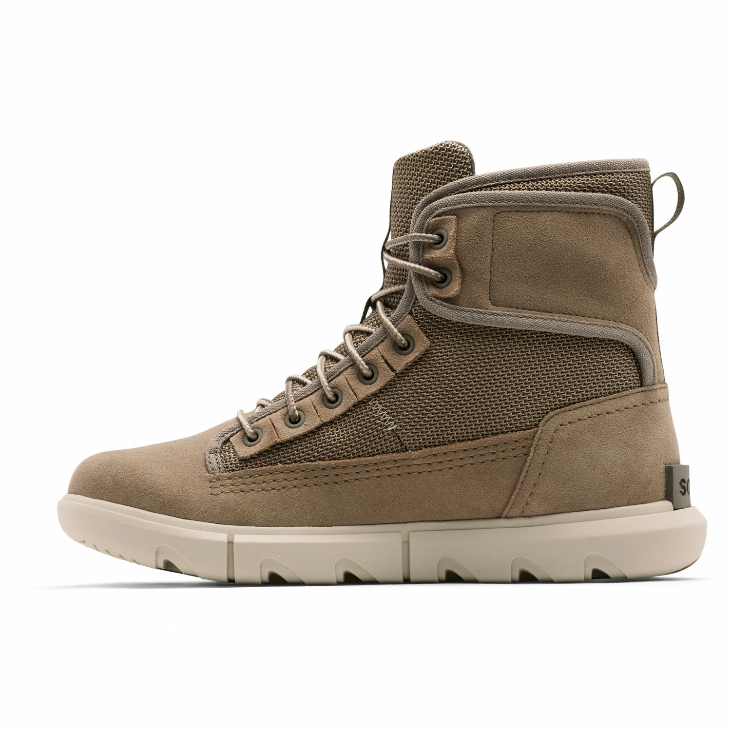 The lacing enables you to easily adapt the fit of these boots to your liking and the pull tabs allow for an easy on/off. Thanks to the EVA footbed, walking in these boots is incredibly comfortable. The material composition of suede and nylon make them waterproof. This allows you to experience adventures in nature even on rainy and wet days. The textile lining inside these boots keeps your feet toasty warm at all times. All of these features make the Sorel Explorer Mission Boot WP an absolute must-have for any outdoor adventure.