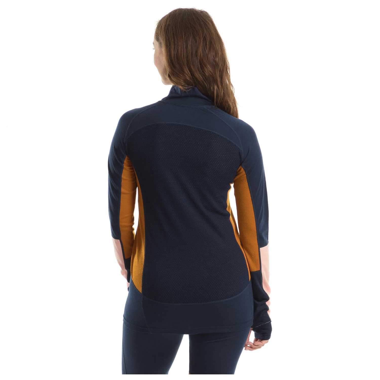 With a host of features including thumb loops, the stand-up collar and the half-length zip, this long sleeve base layer is ideal for winter sports or other outdoor activities on cold days. Due to these clever details, you can either better protect yourself from the cold or enjoy some additional ventilation. This is a decisive advantage in activities where rest periods alternate with intensive exercise, as it means you can enjoy long-term comfort throughout the day.