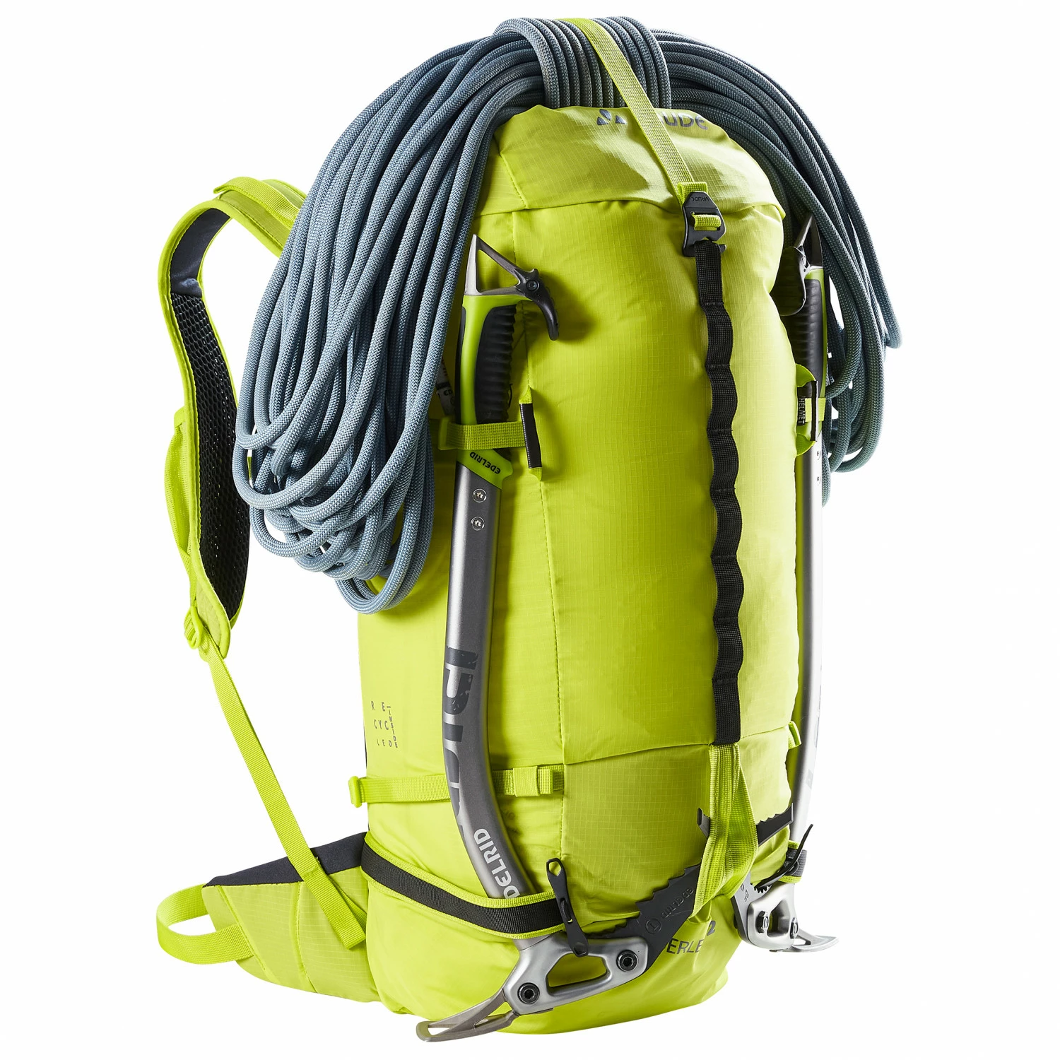 - Attachment options for skis, helmet and rope