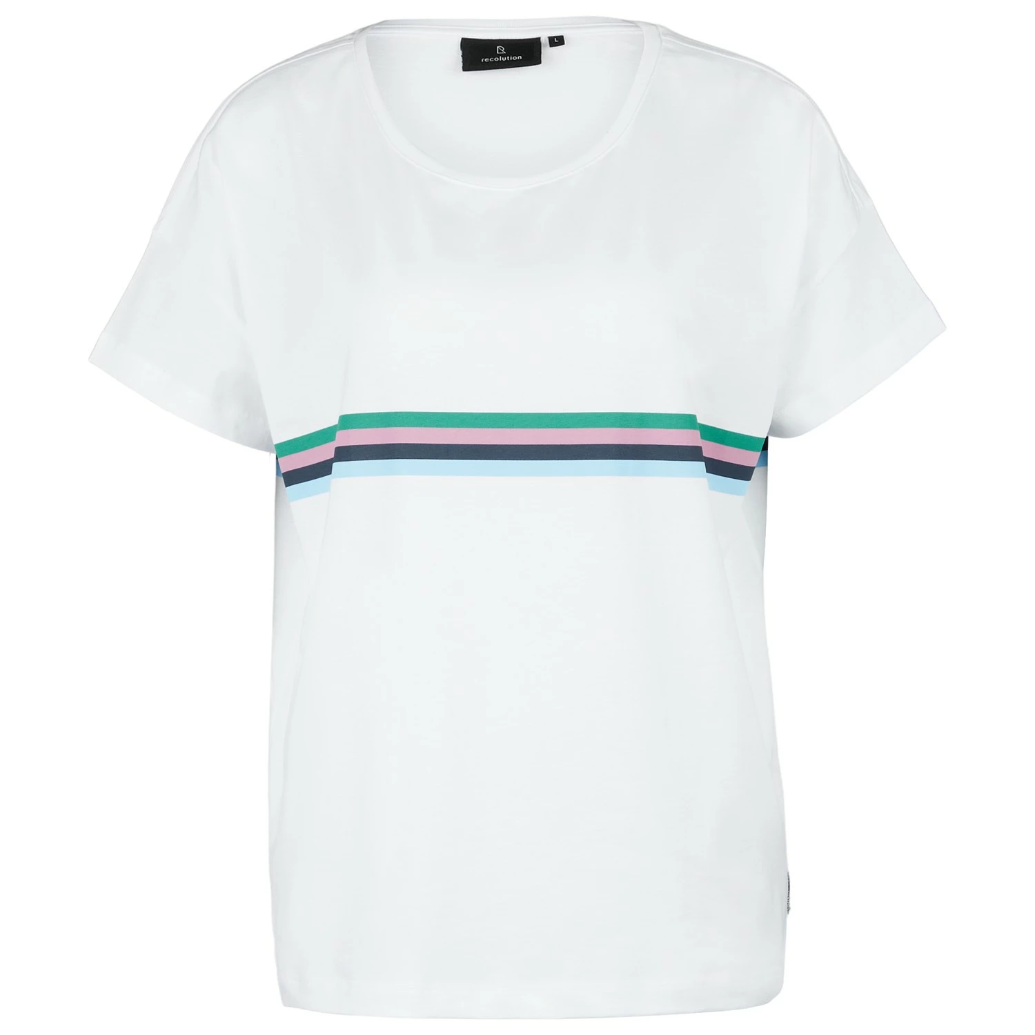 | Extras | offset shoulder seams, crew neck, logo patch |